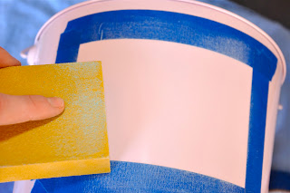 I used the sticker decal that came on the bucket as my guide to tape off the area for the chalk board.