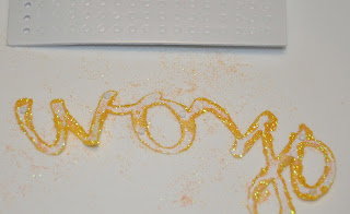 Quickly remove from glue and dunk it in the glitter. I let mine set in the glitter a few minutes so it would dry a bit.