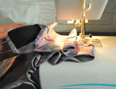 (Do you see how I'm only sewing the pleats on the back of the tie? Now there will be no stitches on the front!)
